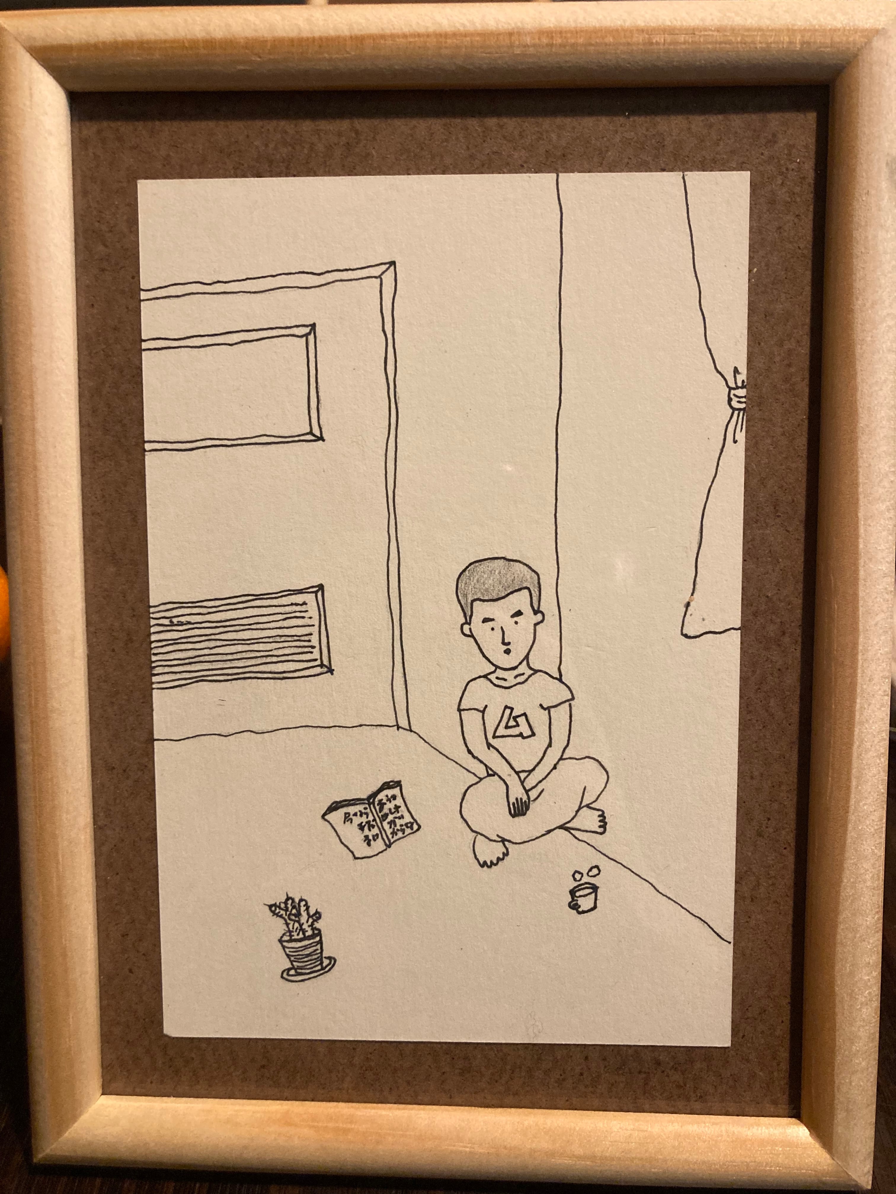 「考えないふり」イラストです。 お部屋で18時半くらいに行われる行為です。